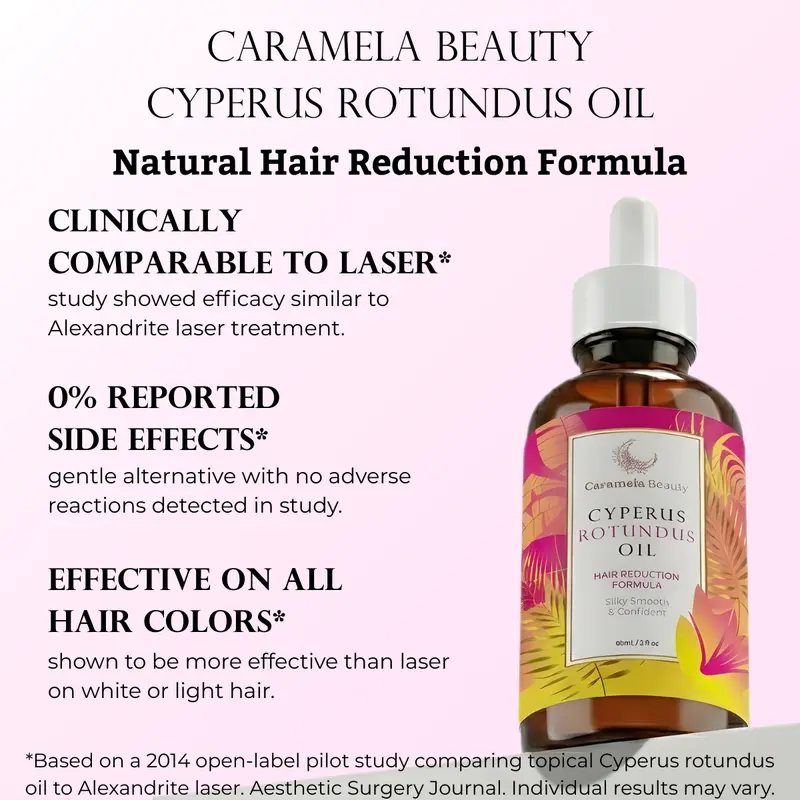Cyperus Rotundus Oil helps weaken hair at the source, making each regrowth softer, finer, and easier to manage—something shaving, waxing, and creams can’t do.